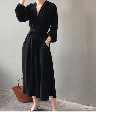 秋のロングスカート軽やかモダンシンプルワンピースしわ防止生地上質フィットロングスカート