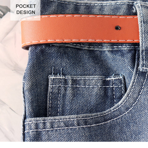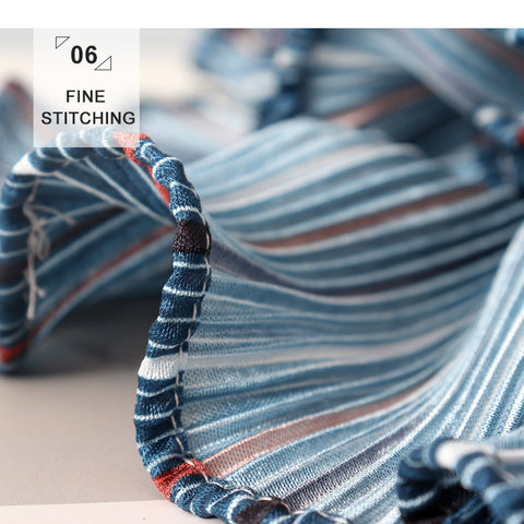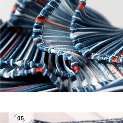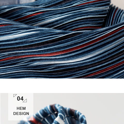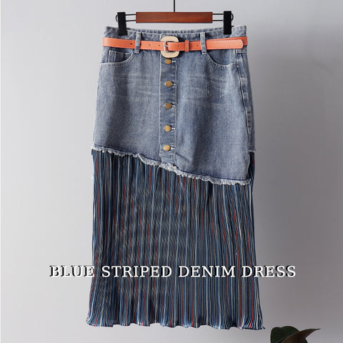 ブルーのストライプデニムスカートモダンな配色トレンドデニムスカートサマーフィットスカート