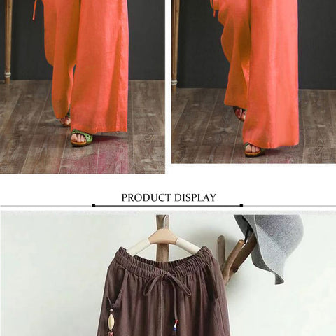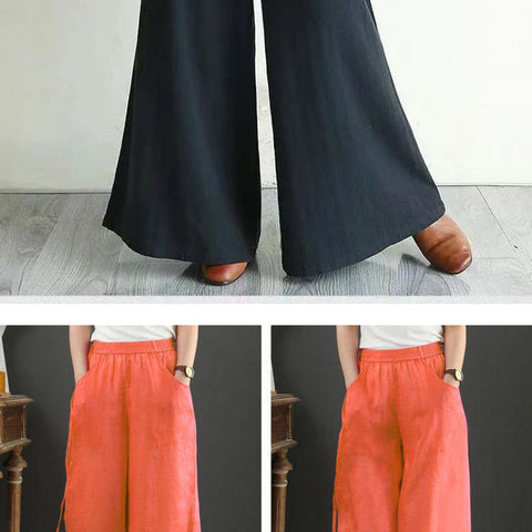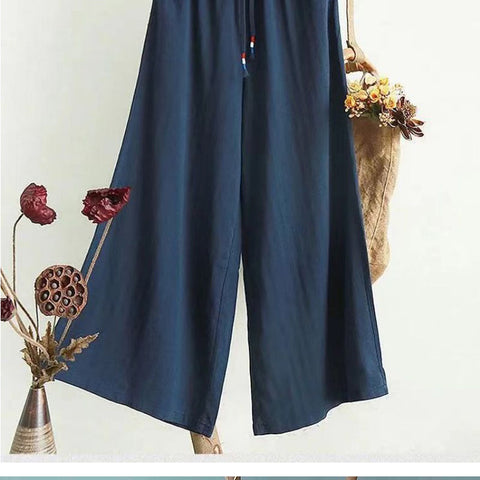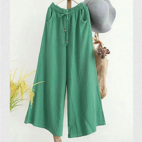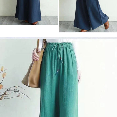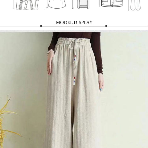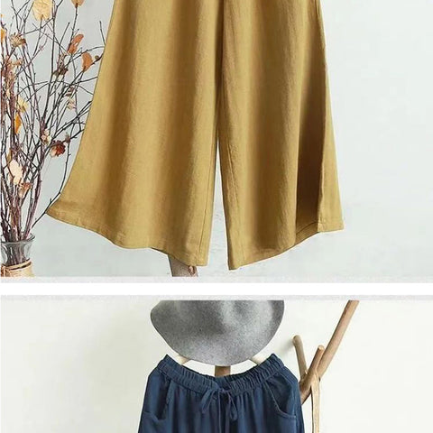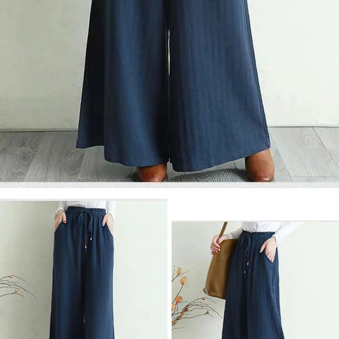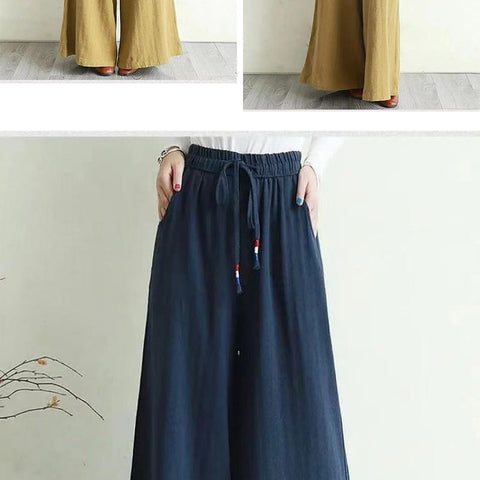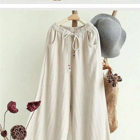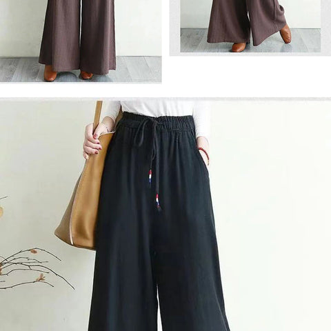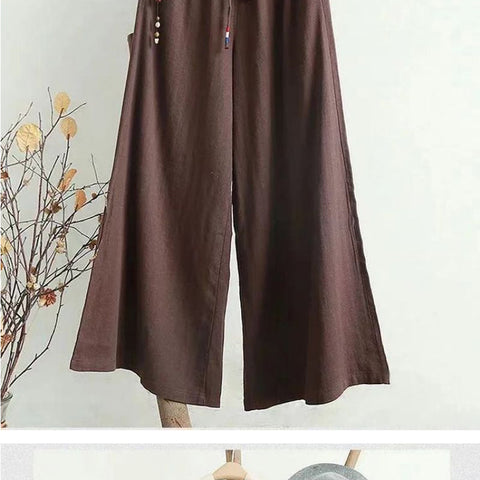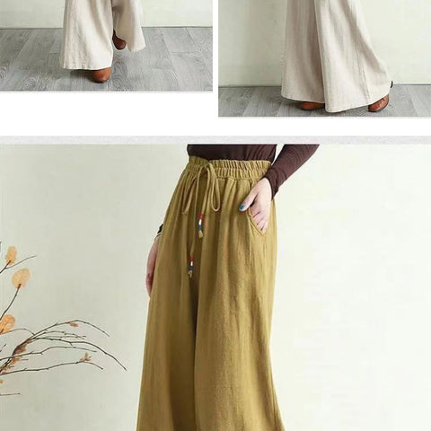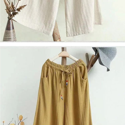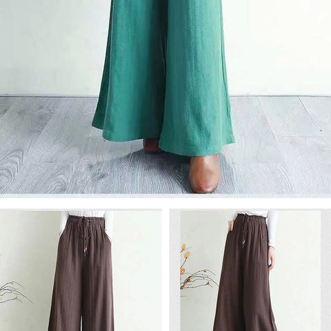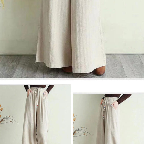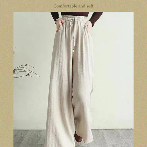 リネンのゆったりとしたワイドレッグパンツ
