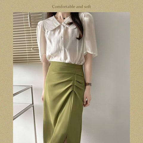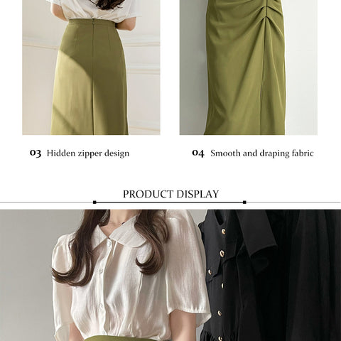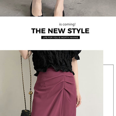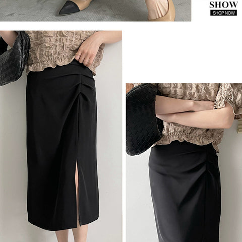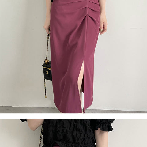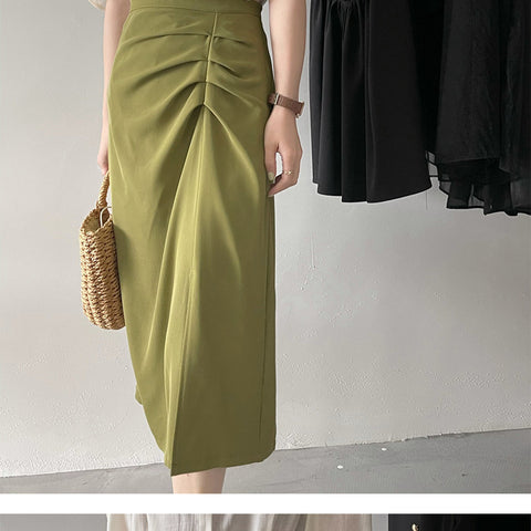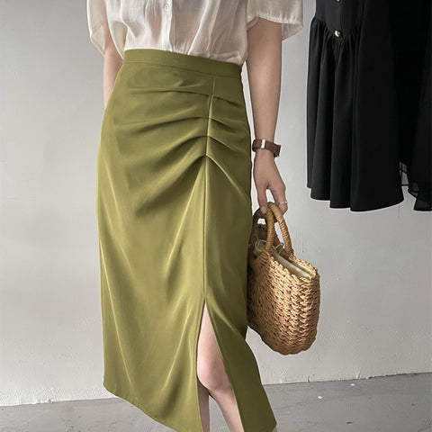 スプリットプリーツハーフボディハイウエストスカート