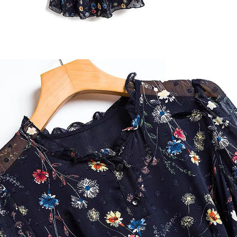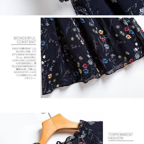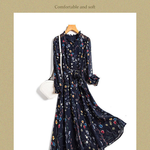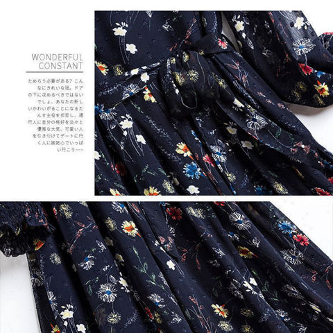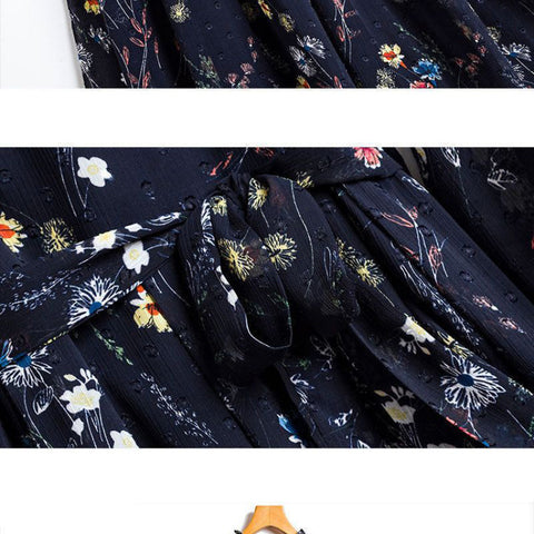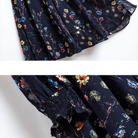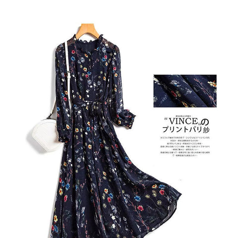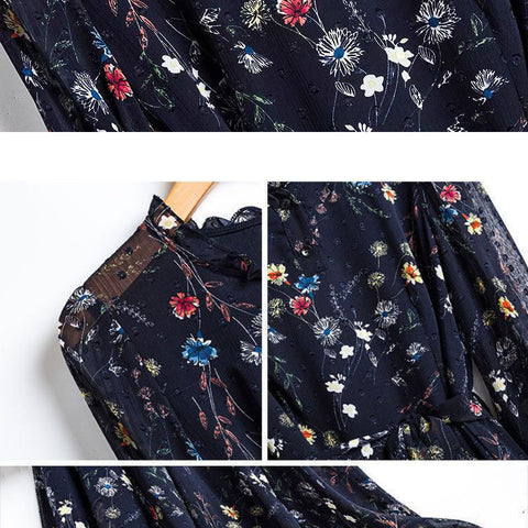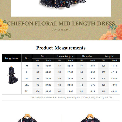 レディースシフォン花柄ミドル丈ドレス