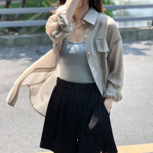 軽やかで上品なシルクのシフォン半身スカートのズボン